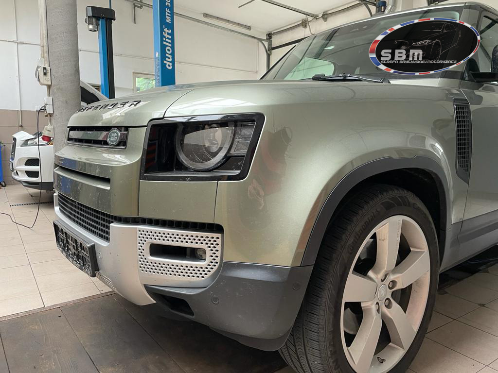 Land Rover Defender został odesłany do naszego serwisu w celu naprawy po szkodzie. Pierwszym etapem na którym się skupiliśmy to naprawa systemu poduszek powietrznych AIRBAG, dzięki któremu wszystkie poduszki powietrzne są aktywne i w pełni działające tak jak przed szkodą. Kolejnym naszym zadaniem była naprawa czujników martwych stref.